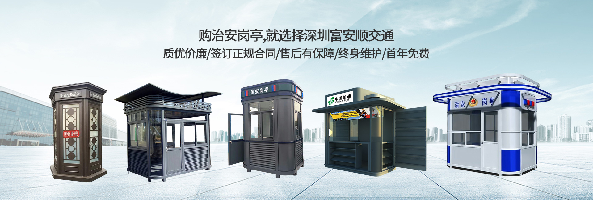 深圳市富安順交通設備有限公司是一專業研發生產停車場出入口收費類相關產品的企業,主打產品為智能停車場出入口高清識別一體機、各類崗亭(鋼結構崗亭、不銹鋼崗亭、鋁塑板崗亭、彩鋼崗亭、玻璃崗亭、木質崗亭、金屬雕花板崗亭)、廣告門禁一體機、人行門禁通道閘(三輥閘、擺閘、翼閘.轉閘)、交通設施等,公司是致力于產品的研發、生產及銷售與一體的企業,經過多年的錘煉,富安順交通設備有限公司成為本行業內首選品牌。以出眾的品質、卓越的性能和優美的外觀受到廣大消費者追捧,成為黨政機關、企事業單位、部隊、學校、體育場館、高檔住宅區的首選產品,公司一直堅持“先賣信譽,后賣產品”的企業精神,秉承“質量筑品牌,服務創未來”的經營理念,遵循“用戶永遠是對的,您的滿意就是我們的工作標準”服務標準,堅守“注重細節,不斷創新,追求完美”的企業宗旨,以真誠、主動、專業、高效、全方位、人性化地為客戶服務,以追求客戶******滿意度為我們的目標,客戶滿意就是我們存在的價值的服務理念,為客戶利益不斷努力的創新。公司恭候新客戶,來電,來函或者親自蒞臨我司指導!